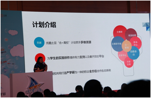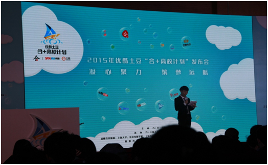 2015年12月25日,在上海大学校本部区图书馆报告厅,优酷土豆携手上海大学上海电影学院、北京电影学院、上海戏剧学院、浙江传媒学院、南京艺术学院和四川音乐学院等院校正式开启了"合+高校计划"。