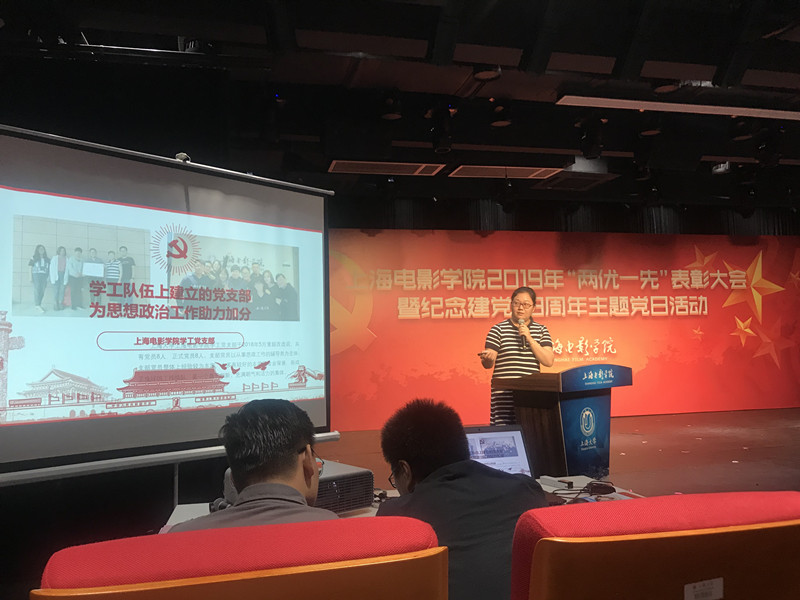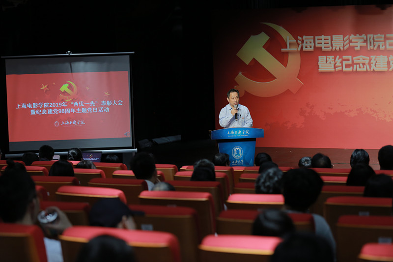 6月28日上午,上海电影学院在延长校区四教五楼小剧场举行2019年"两优一先"表彰大会暨纪念建党98周年主题党日活动。